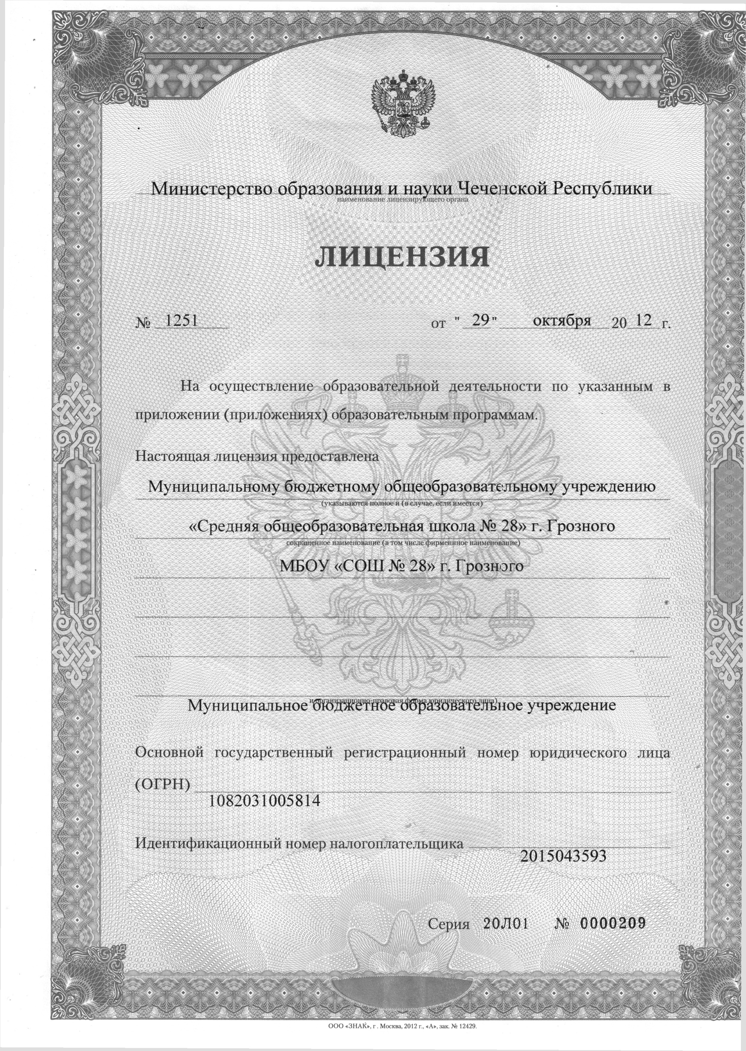 Лицензия на осуществления образовательной деятельности