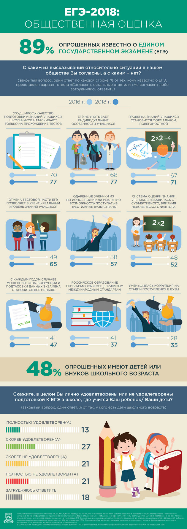 Всероссийский центр изучения общественного мнения (ВЦИОМ) представил данные опроса о том, как россияне воспринимают единый государственный экзамен (ЕГЭ).